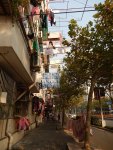Shanghai, China. Walk home: afternoon sun, laundry, vehicles on the sidewalk + this week’s AQI.