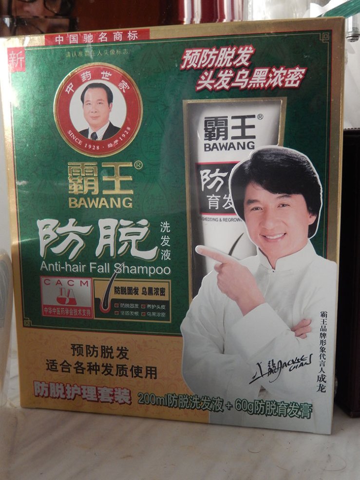 Shanghai, China. Jackie Chan Anti-hair Fall Shampoo. Matt bought this a few weeks ago, for the packaging, and I look at smiling Jackie every time I brush my teeth.