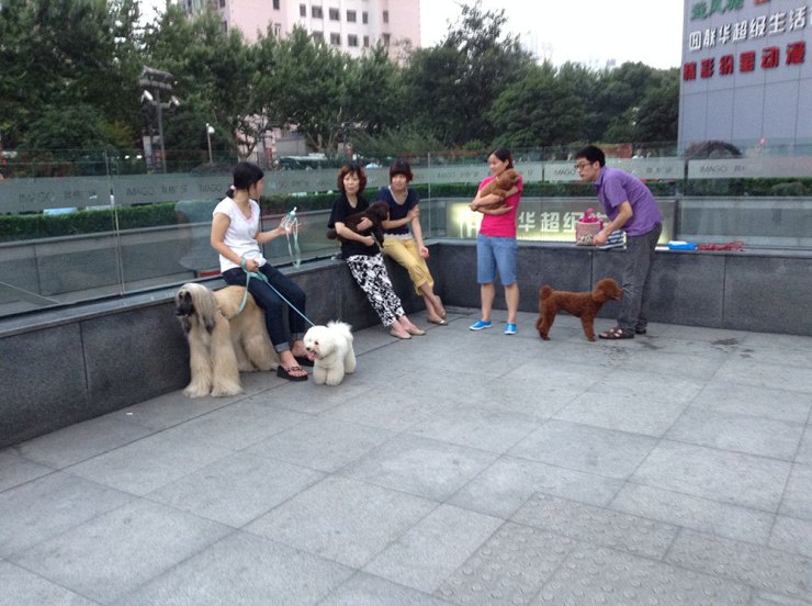 Shanghai, China. I’ll miss this when we move – the nightly 6pm dog assembly outside the mall.