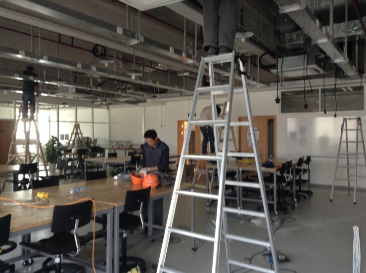 NYUSH – Happening right now in the IMA Lab. Installation of retractable power and more lamps!