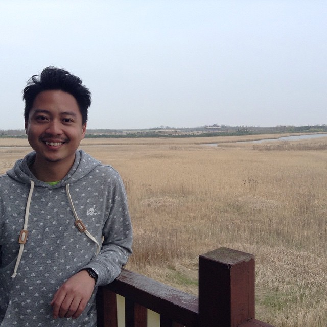 Bike ride rest with Antonius and friends at NYU Shanghai spring outing at Chongming Island Dongtan Wetland Park.