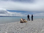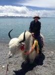 Namtso Lake, Tibet. at 15,479 ft. The Lake. I’m on a yak. Matt taking photos of the lake next to a reclining yak.