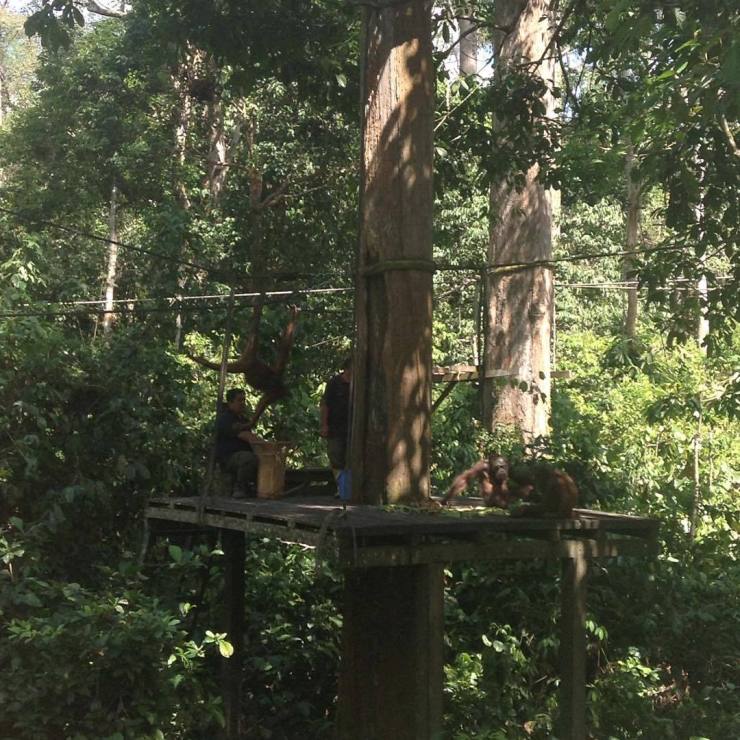 Sepilok, Borneo. Malaysia. Feeding time at the Sepilok Orangutan Rehabilitation Center.
