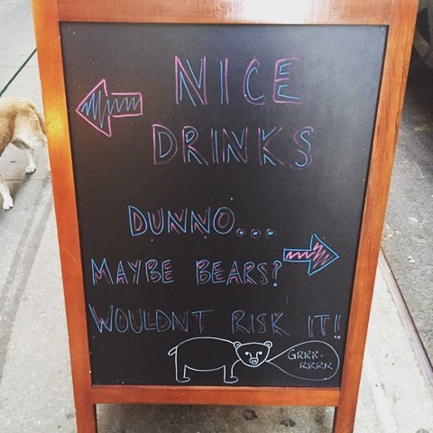 This way: nice drinks. This way: dunno … Maybe bears? Wouldn’t risk it.