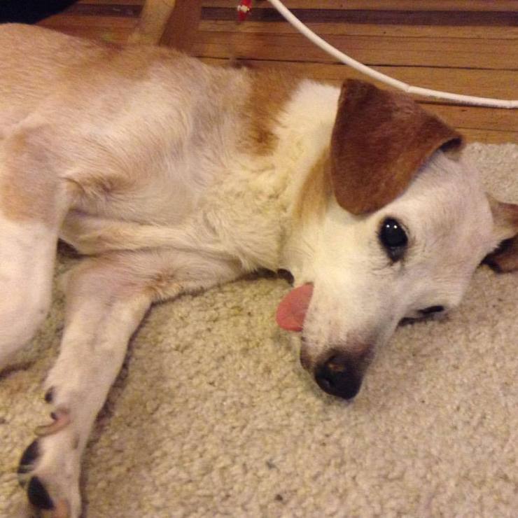 Sleepy dog with tongue.