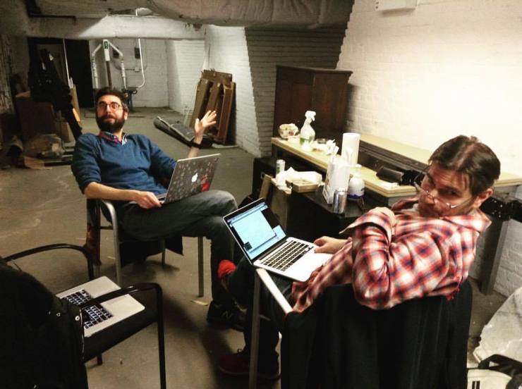 ITP Winter show producers – Dan, Marianne, and Rob – lock themselves in the building’s sub-basement to plan the show.